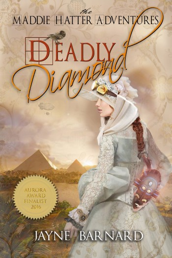 Legendary diamonds & lost explorers are the story for this late-Victorian lady journalist, until her identity is stolen by a con-woman already wanted in 3 countries. This airship-hopping adventure takes Maddie from Cairo to a showdown in an isolated Cornish manor house, and far beyond.